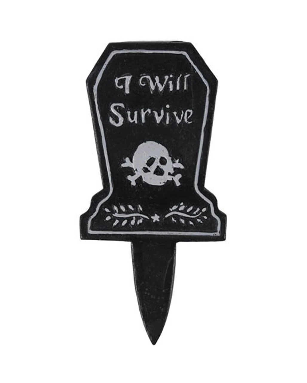 Du erhältst ein aus MDF gefertigtes Blumendeko Grabstein Schild mit einem der vier möglichen Schriftzüge: Water Me, RIP, I will Survive oder Not Dead Yet. Leider ist die Wahl aus technischen Gründen leider nicht möglich, aber lass dich einfach überraschen, welchen Pflanzkübel Grabstein du bekommst. Bestelle doch am besten gleich mehrere Pflanzenfriedhof Grabstein Schilder, so ist die Chance groß, dass von jedem Spruch einer dabei ist. Geniale Blumenkübel, wie das Totenschädel Pflanzentopf findest du ebenfalls bei uns.
