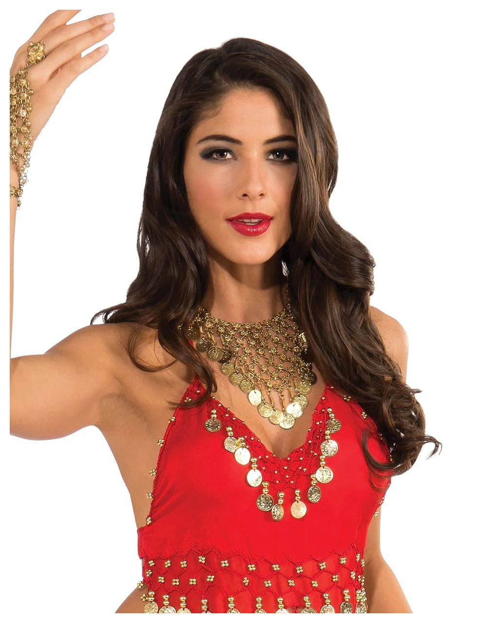 Exotisches Bauchtänzerin Kostüm mit Münzen rot