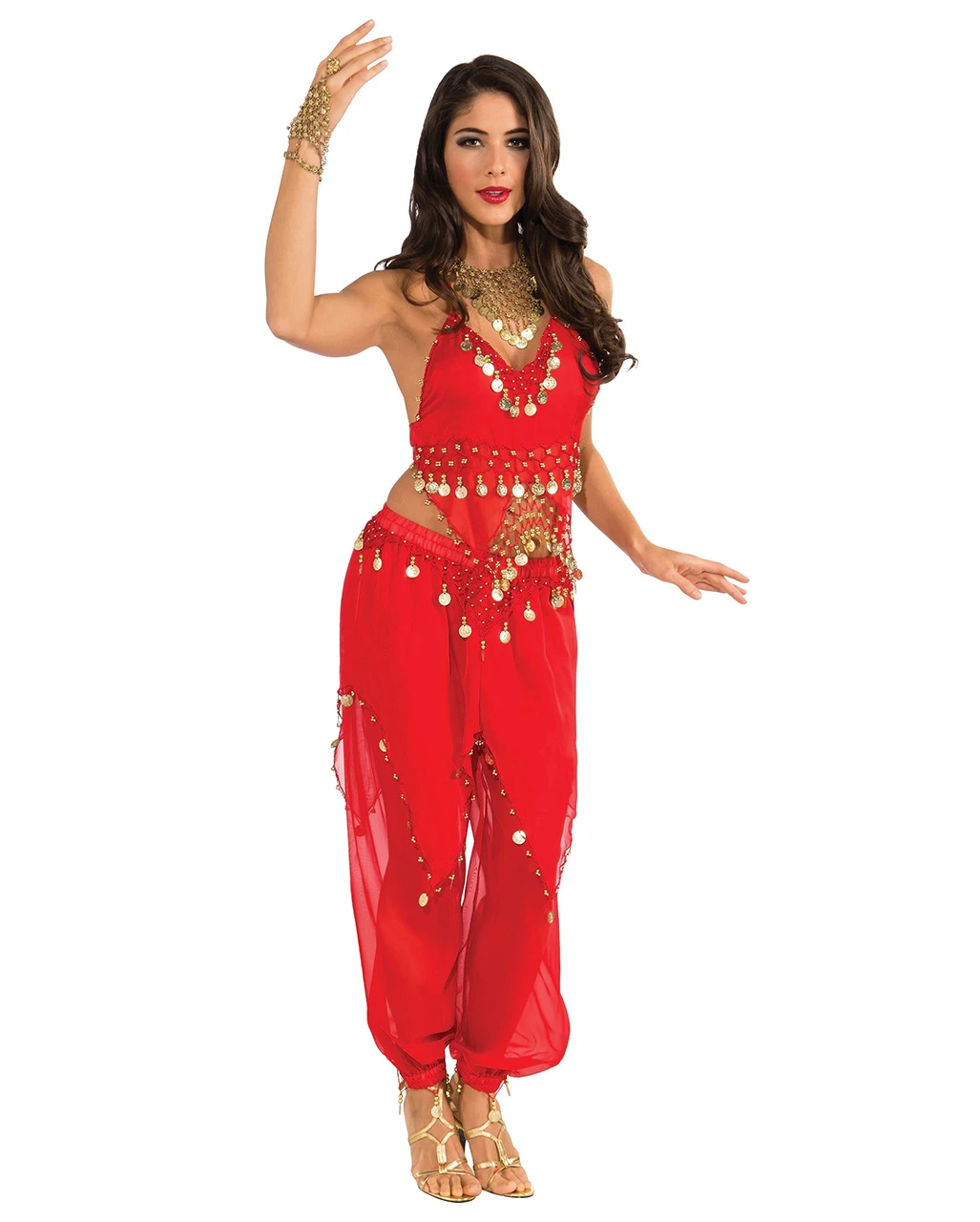 Lieferumfang: 1 x Exotisches Bauchtänzerin Kostüm mit Münzen rot