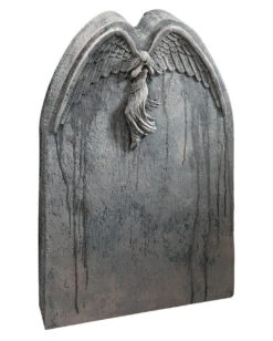 Der Halloween Grabstein Fallender Engel, ist ganze 76 cm hoch und besitzt abgerundete Ecken, auf der die Flügel des Engels abgebildet sind. Der weinende Engel hält sich die Augen zu und thront in der Mitte des Grabsteins. Der graue Grabstein mit Engel ist eine stabile Requisite aus festem aufgeschäumten Kunststoff, auf der Rückseite hohl und ist wetterbeständig. Jetzt die Szene noch mit Halloween Deko Moos perfektionieren und schon besitzt du dir richtige Friedhofs Atmosphäre.