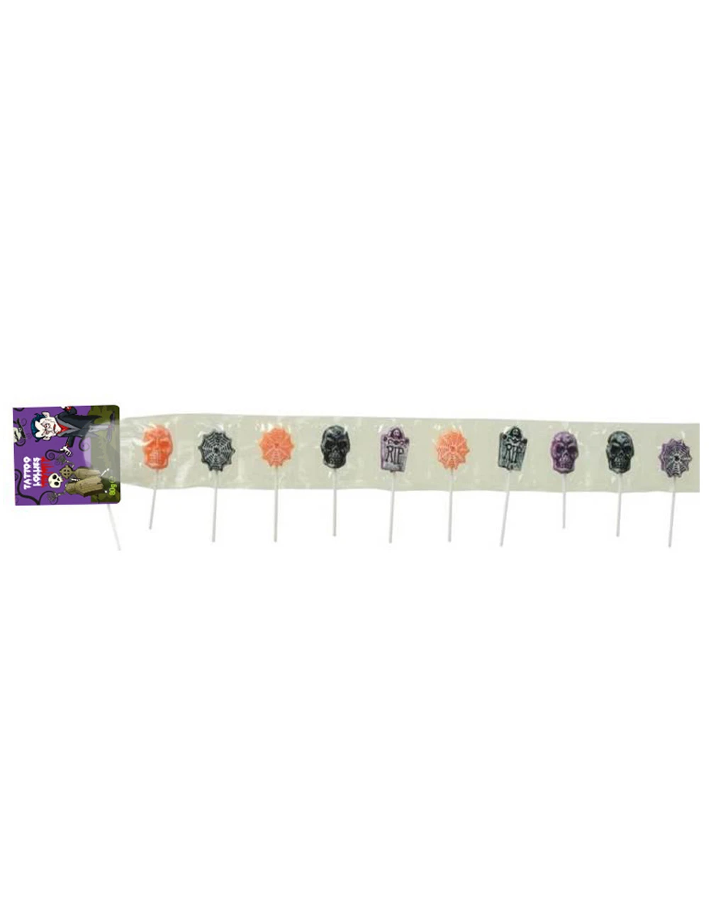 Einzeln verpackte Halloween Lollies im Tattoo Style