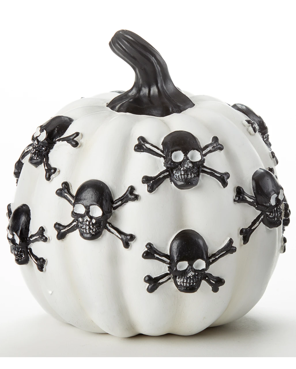 - Weißer Polyresin Halloween Kürbis mit Skulls