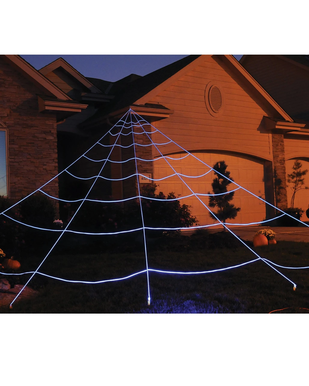 Im Schwarzlicht leuchtende Spinnweben als Dekoration für den Außenbereich an Halloween