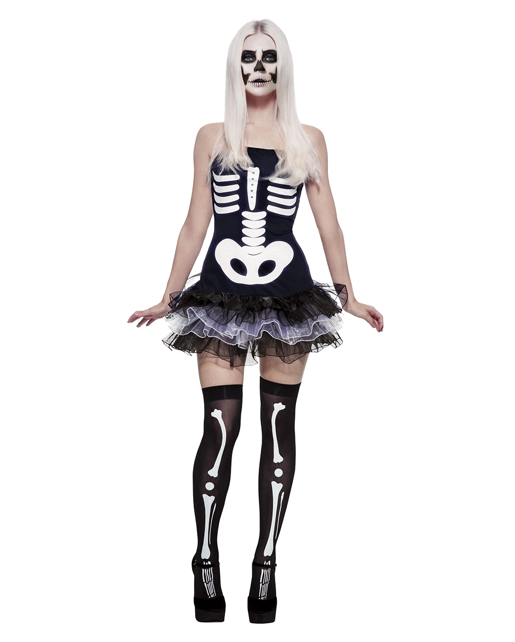Sexy Kostüm mit Tutu und Knochenaufdruck als Motiv