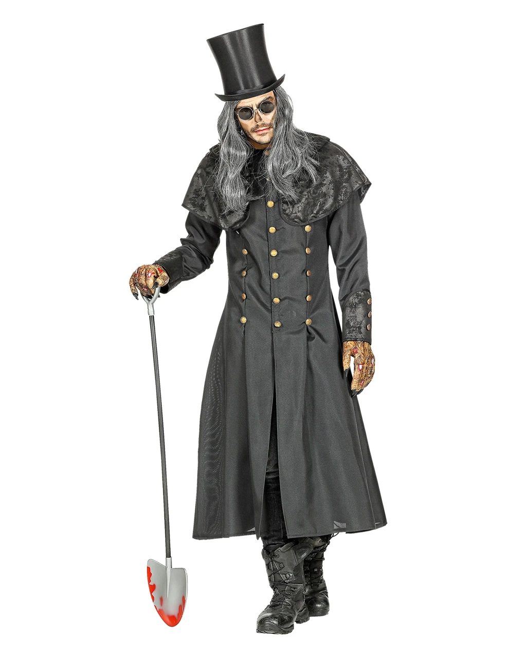 Für einige Menschen ist der Beruf des Totengräbers eine ziemlich gruselige Vorstellung. Du jedoch erfüllst diese Aufgabe mit Leidenschaft. Im Totengräber Kostüm Herrenmantel mit Kragen hast du eine elegantes Herren Halloween Kostüm gefunden, welches dich nicht nur auf dem Friedhof zum geheimnisvollen Blickfang macht. Der elegante Halloween Mantel mit Goldknöpfen ist perfekt für die Darstellung mysteriöser Charaktere – da gehört der Totengräber definitiv dazu. Mit einem Hut und Stiefeln aus unserem Onlineshop wird deine Verkleidung komplett.