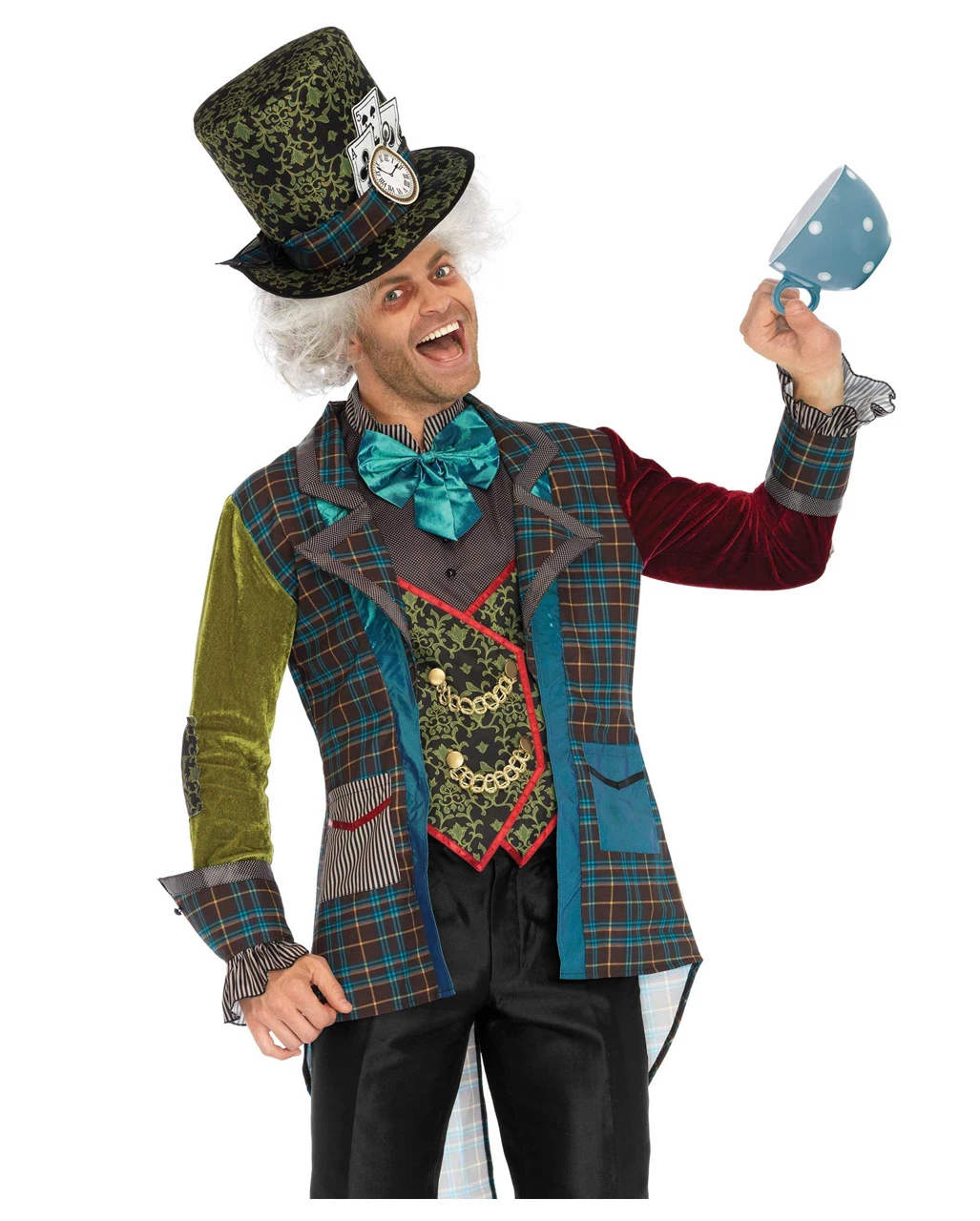 Du erhältst eine Verrückter Hutmacher Verkleidung Deluxe bestehend aus einem mehrfarbigen Jacket in Patch-Optik, einem Halstuch und einem verrückten Hut. Überzeuge dich selbst von der einzigartigen Qualität dieses Fantasy Kostümzubehörs. Verschiedene Stoffarten und Texturen machen nicht nur optisch einiges her, sie fühlen sich auch toll auf der Haut an. Trage die Mad Hatter Verkleidung als Mix and Match Zubehör zu einer Hose und einem passenden Hemd aus unserem Onlineshop. Für Damen empfehlen wir hierzu passend Verrückte Hutmacherin Kostüm