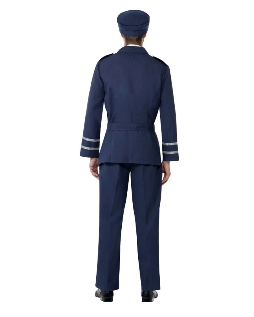 Verkleide dich jetzt mit dem 4-teiligem dunkelblauen 40s Soldaten Kostüm als Captain, Offizier oder Pilot der Vierziger Jahre. Das Soldaten Kostüm besteht aus dunkelblauer Hose, taillierten Jackett mit Knöpfen, das an den Ärmeln Rangabzeichen als Motiv zeigt. Eine Krawatte und die dunkelblaue Uniformmütze bilden den Abschluss des figurbetonten Soldaten Kostüms. Um im Partnerlook zu gehen bestelle doch das 40s Airforce Captain Kostüm am besten gleich mit.