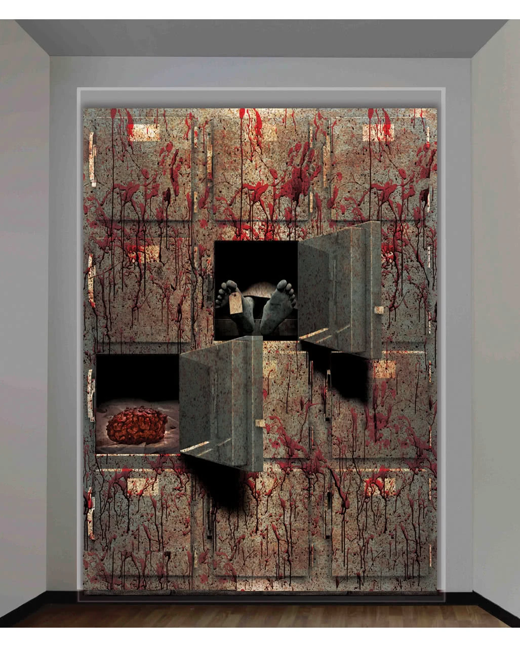 Lieferumfang: 1x Wandfolie Leichenschauhaus für Halloween