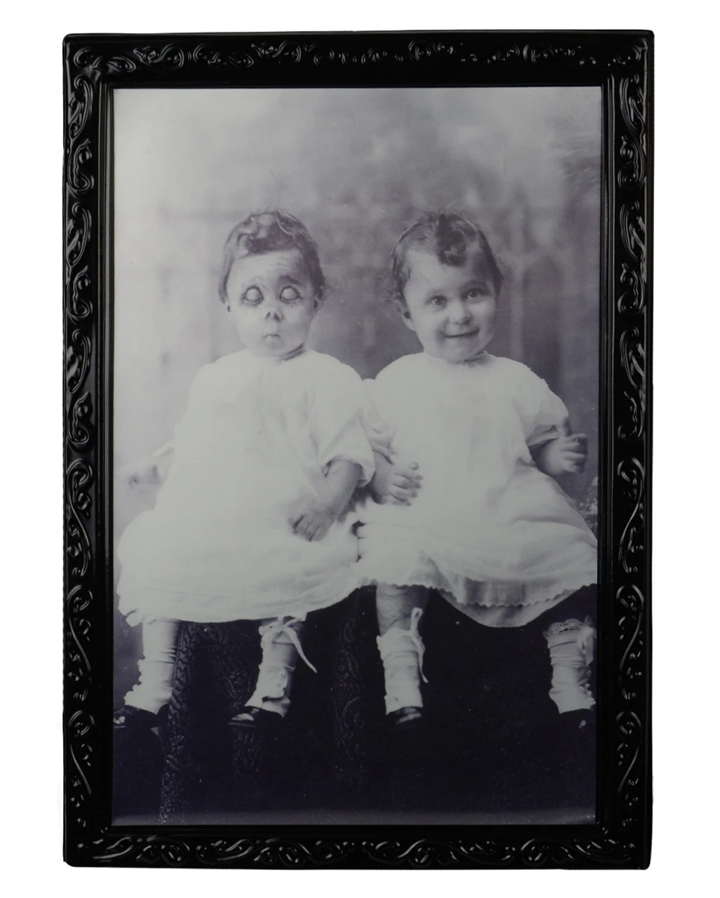 Verwandle dein Zuhause in eine Geisterbahn mit unserem Zombie Zwillinge Effektbild! Das unheimliche Wackelbild wird an Halloween und auf Gruselpartys unter Garantie für Angst und Schrecken unter deinen Partygästen sorgen!
